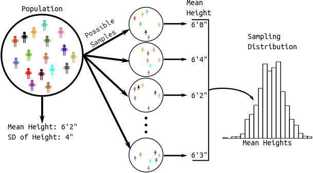 Sampling Distribution: The distribution of a statistic over many hypothetical random samples from the population.